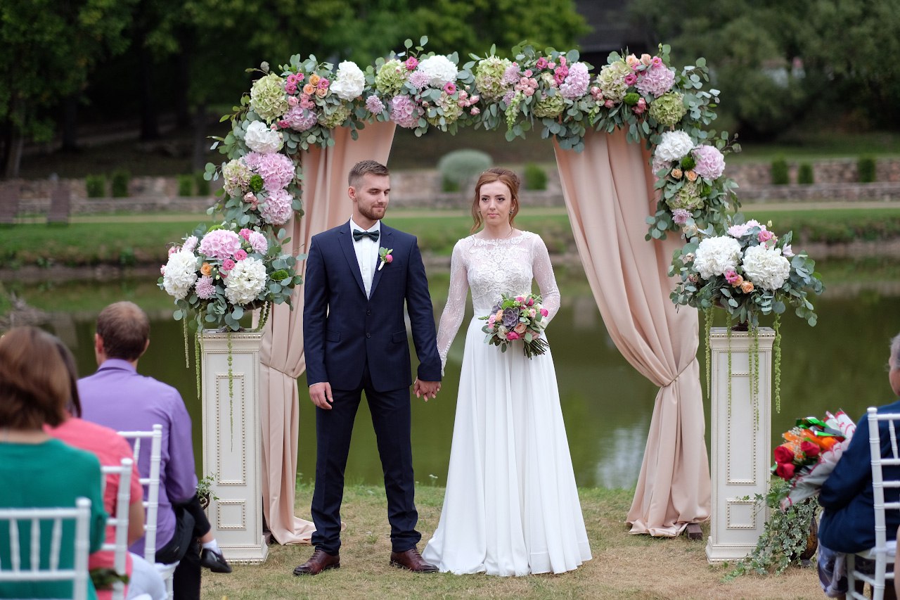 Смотреть друг другу в глаза, держась за руки, прошептать «да» и произнести свадебные обеты вечной любви на берегу озера, в старинной усадьбе, под вековым развесистым дубом, на красивом зеленом лугу загородного дома или посреди большого мегаполиса… решение за Вами. Очень модно и невероятно популярно проводить свадебные выездные церемонии бракосочетания на террасе или площадке, которая находится рядом с банкетным залом, это поможет избежать бесполезных и изматывающих переездов и излишних затрат.